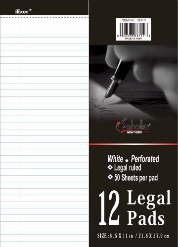 good for office use!, December 22, 2010 Amazon Verified Purchase This review is from: iScholar White Legal Pads, 12-Pack, 8.5 x 11.75 Inches, 50 Sheets per Pad (68110) (Office Product) I bought it to use in office, it simple does what I expected